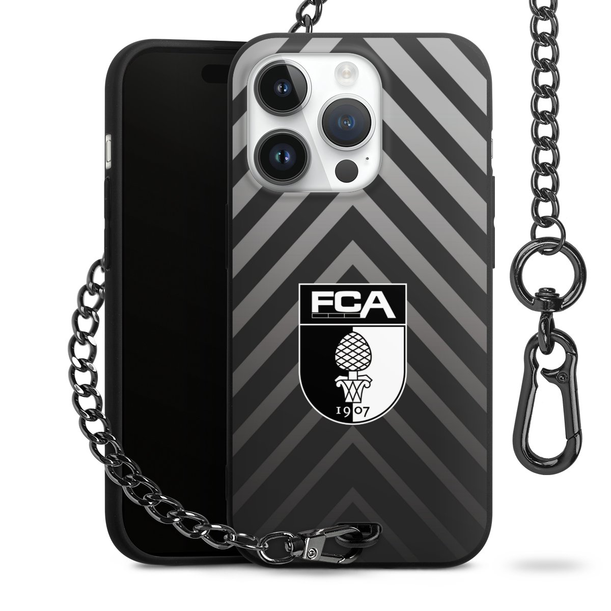 • Mattschwarze Handyhülle mit Metallkette