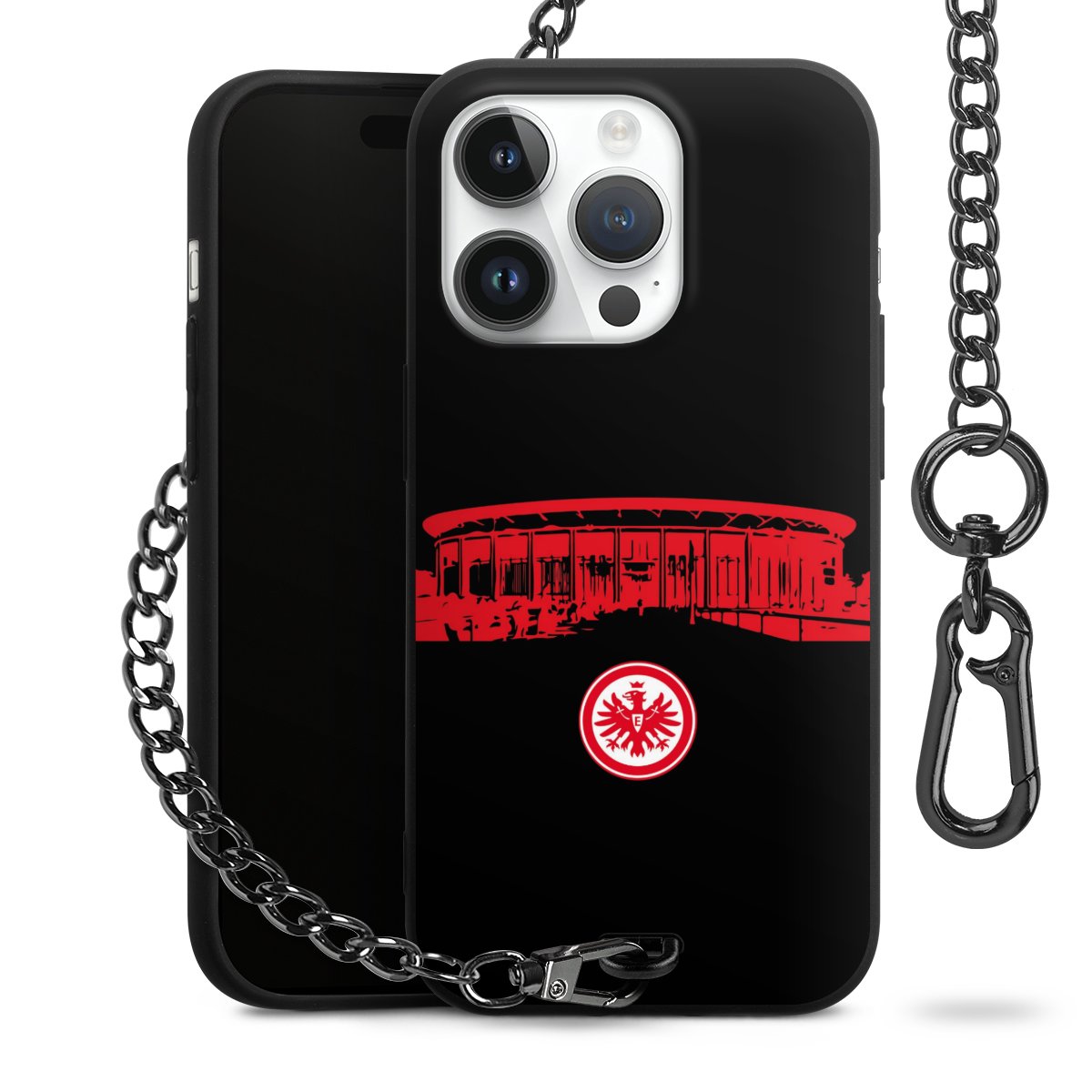 • Mattschwarze Handyhülle mit Metallkette