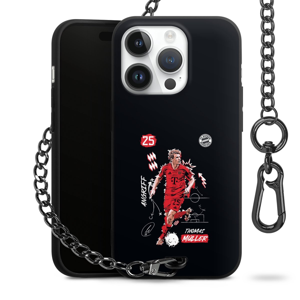 • Mattschwarze Handyhülle mit Metallkette