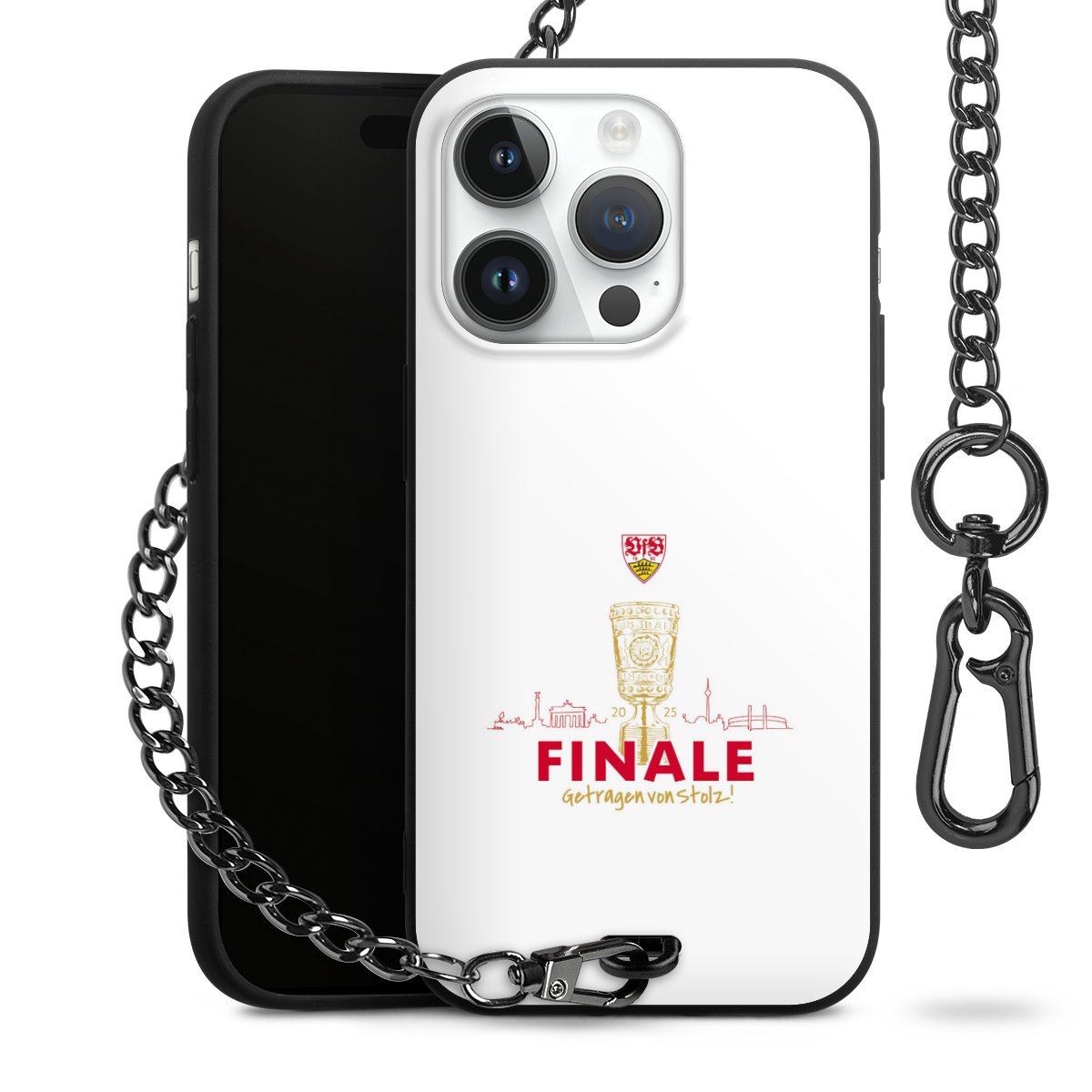 Die mattschwarze Silikon-Handyhülle besteht aus robustem TPU (thermoplastisches Polyurethan). Sie ist flexibel und schützt Dein Smartphone vor Stößen und Kratzern. Die Kette sowie der Karabinerhaken sind aus Metall in Gunmetal-Optik gefertigt. Für dieses Produkt kommen ausschließlich TÜV-geprüfte Materialien zum Einsatz.
