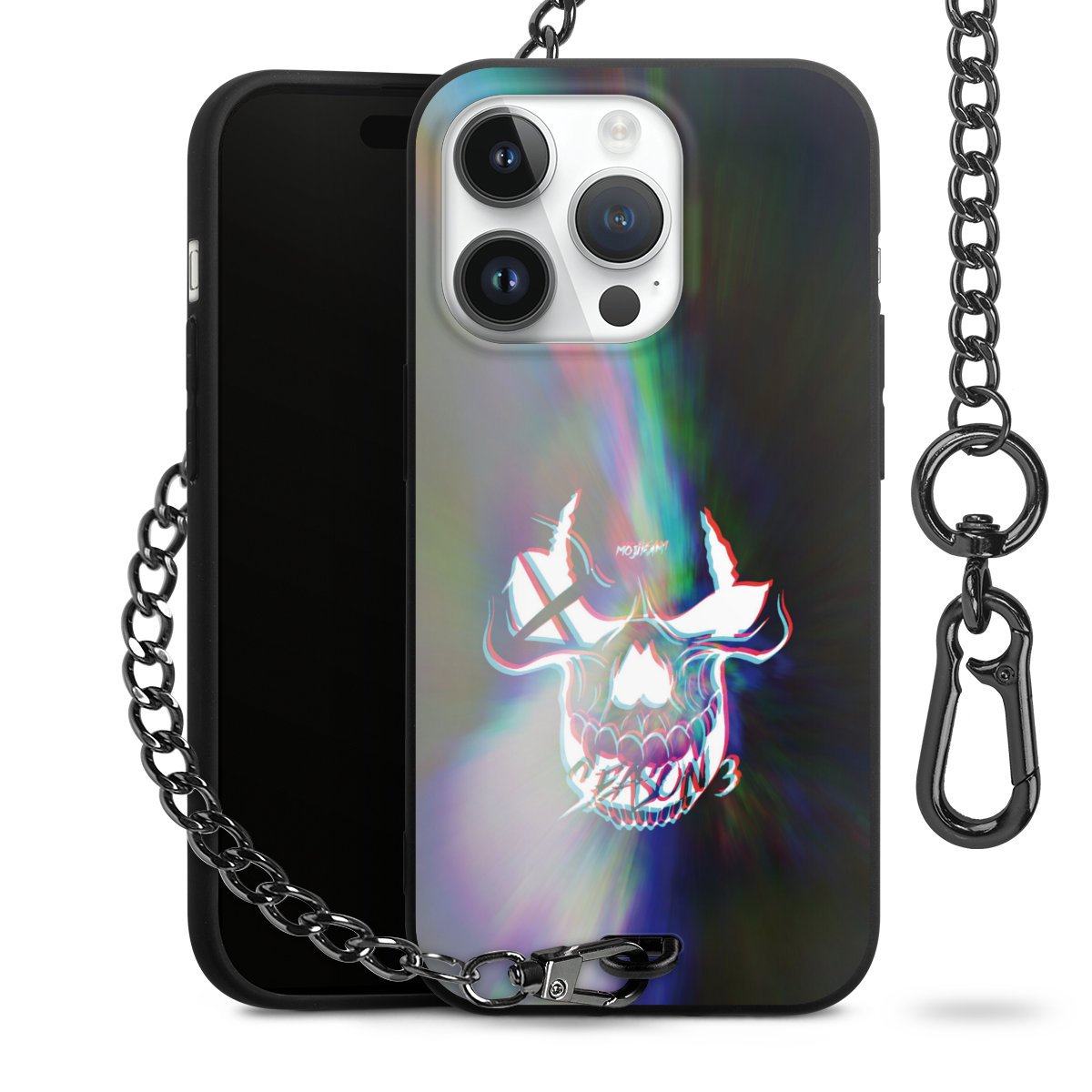 • Mattschwarze Handyhülle mit Metallkette