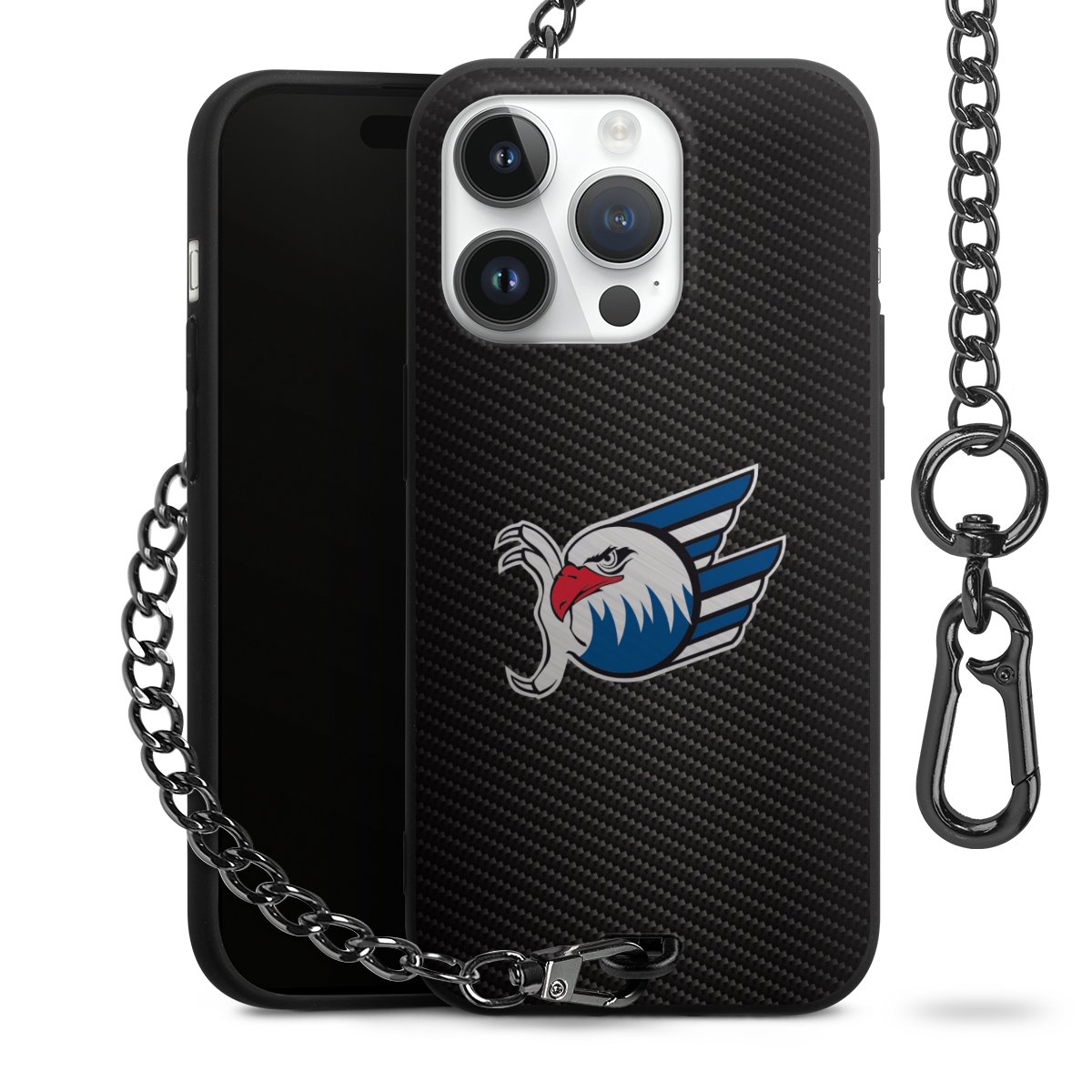 • Mattschwarze Handyhülle mit Metallkette