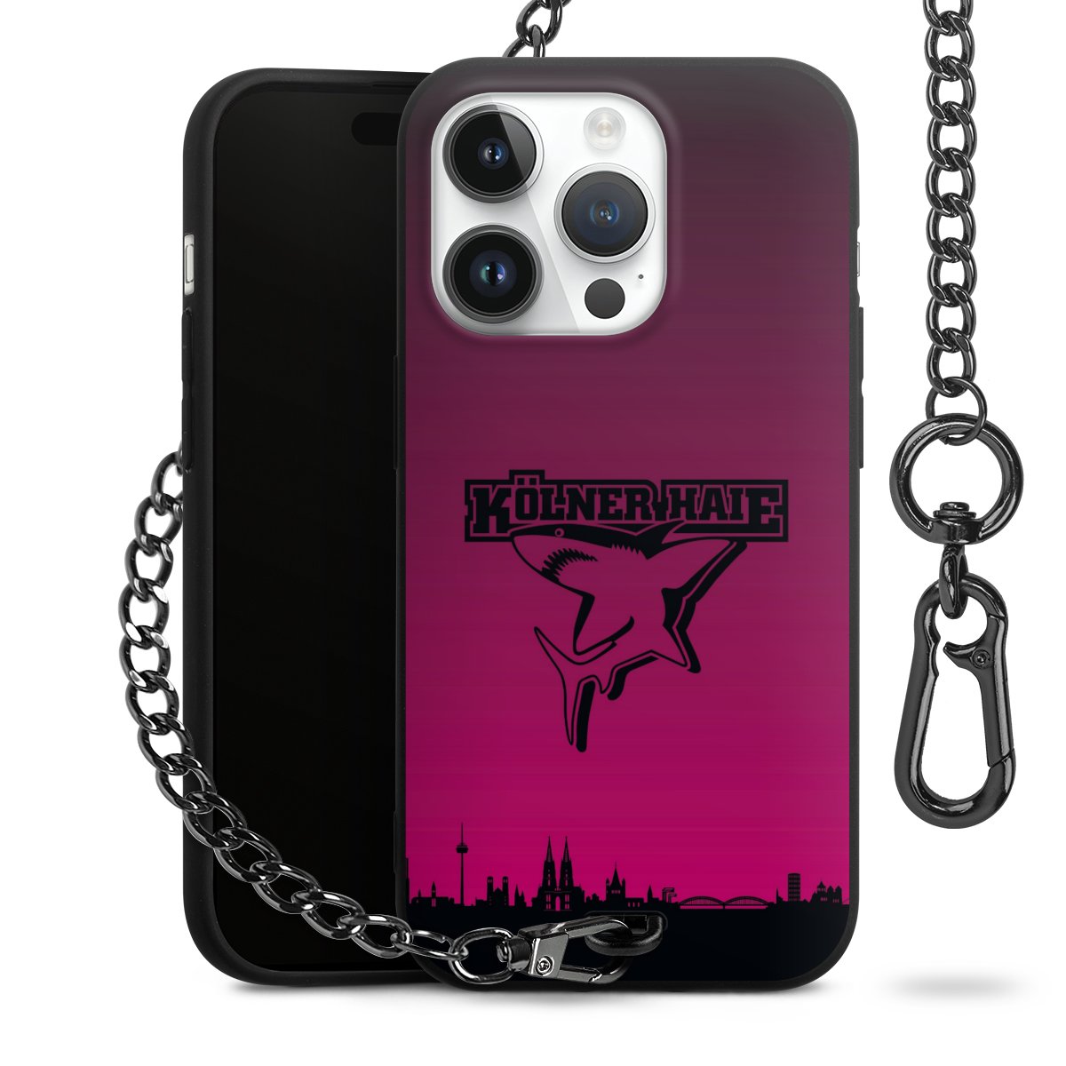 Die mattschwarze Silikon-Handyhülle besteht aus robustem TPU (thermoplastisches Polyurethan). Sie ist flexibel und schützt Dein Smartphone vor Stößen und Kratzern. Die Kette sowie der Karabinerhaken sind aus Metall in Gunmetal-Optik gefertigt. Für dieses Produkt kommen ausschließlich TÜV-geprüfte Materialien zum Einsatz.