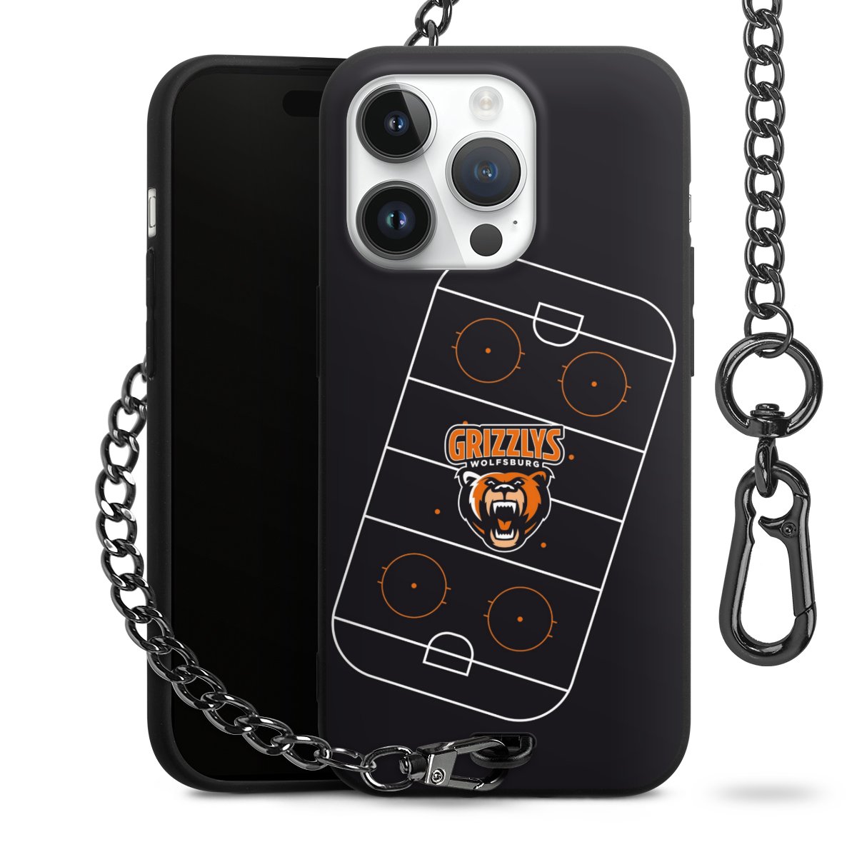 - Mattschwarze Handyhülle mit Metallkette