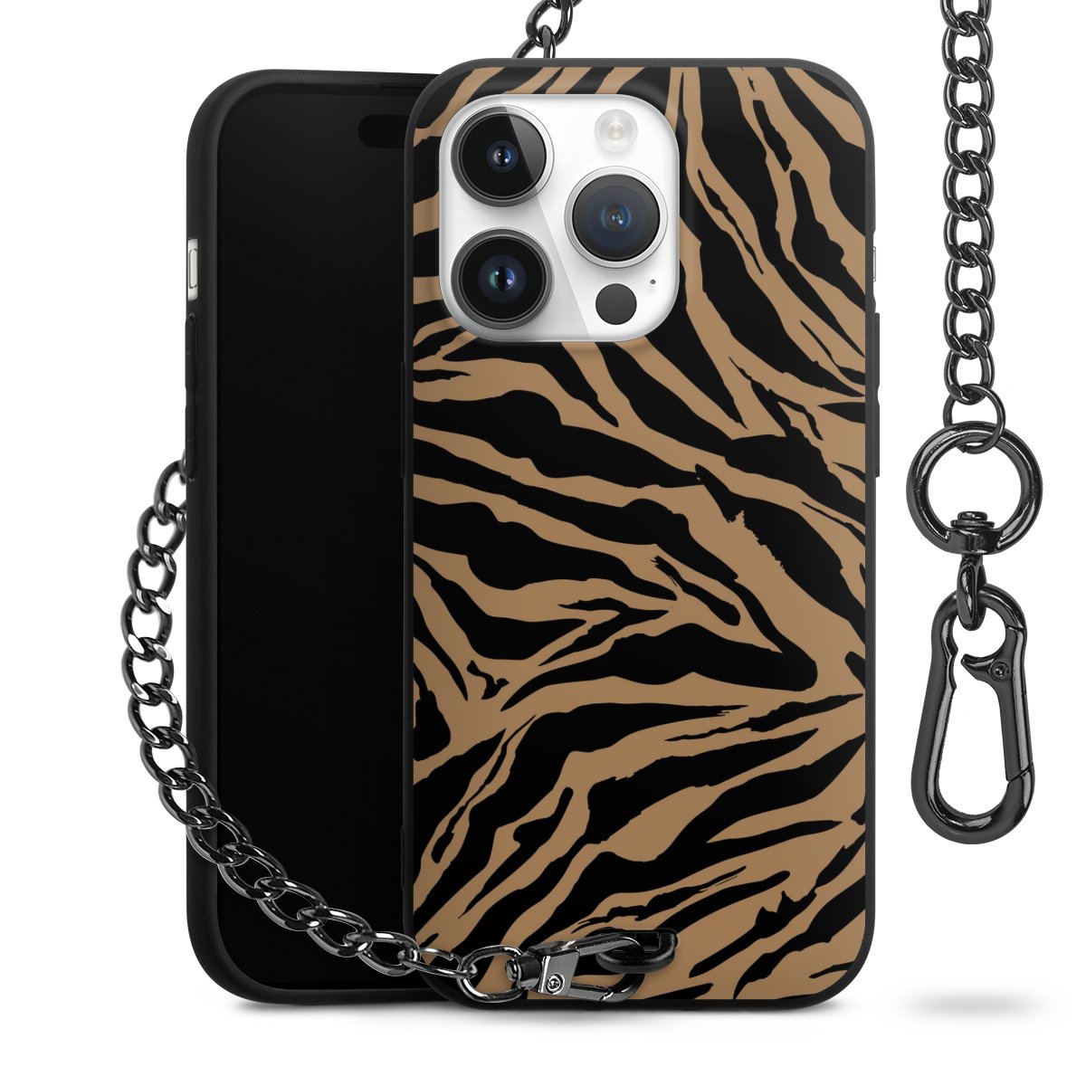 - Mattschwarze Handyhülle mit Metallkette