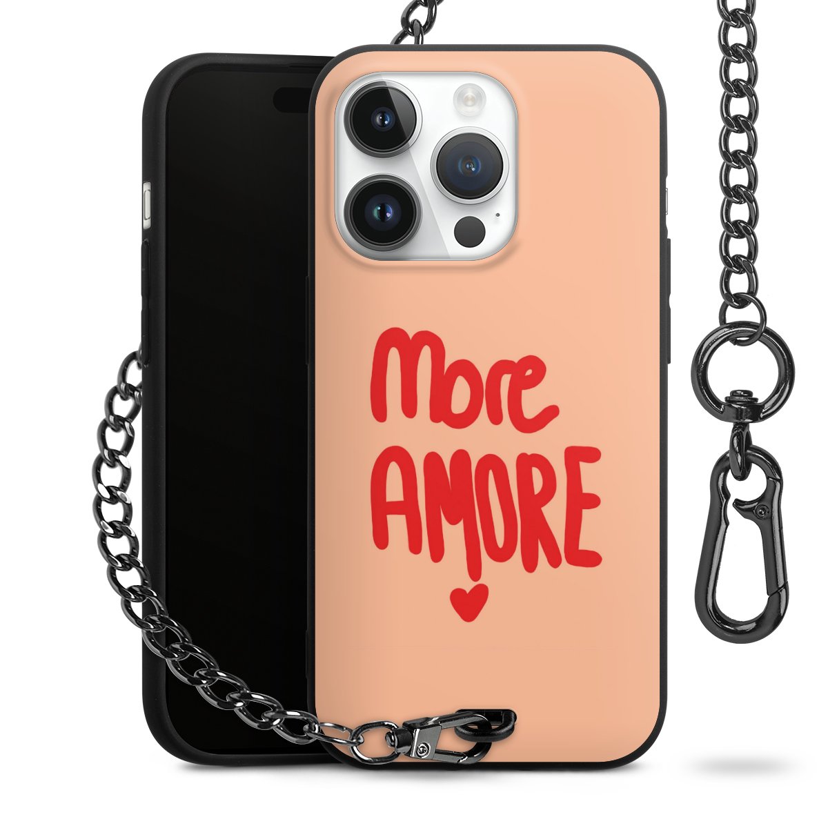 • Mattschwarze Handyhülle mit Metallkette