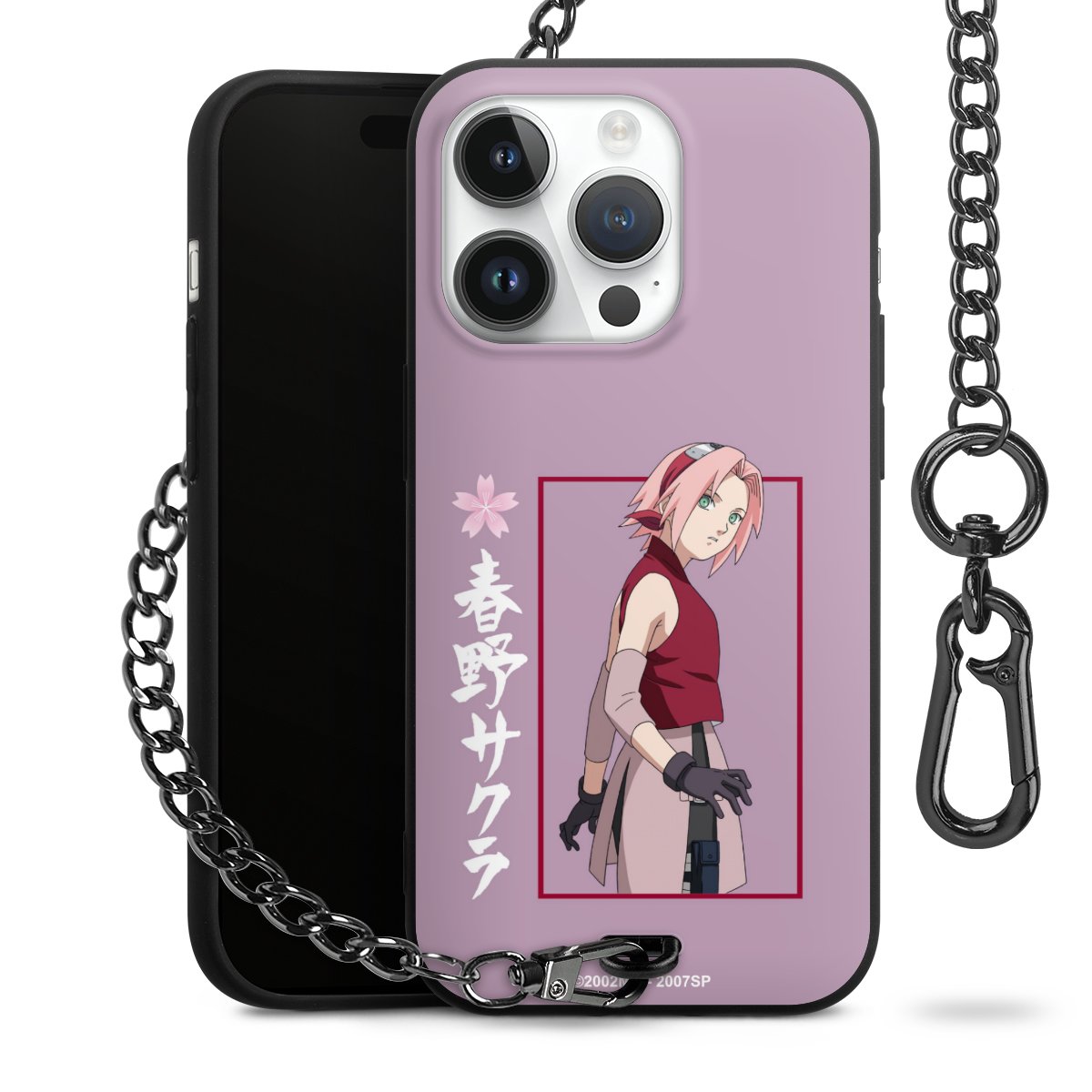 • Mattschwarze Handyhülle mit Metallkette