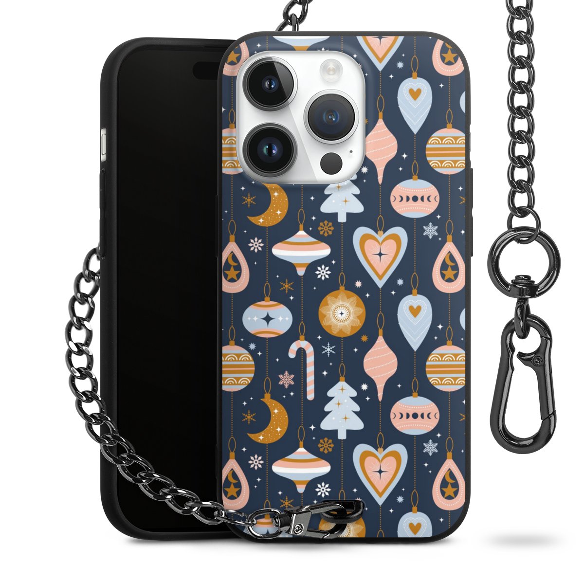 • Mattschwarze Handyhülle mit Metallkette