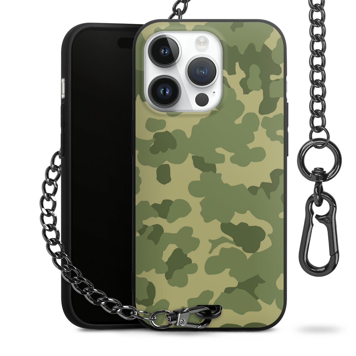 Die mattschwarze Silikon-Handyhülle besteht aus robustem TPU (thermoplastisches Polyurethan). Sie ist flexibel und schützt Dein Smartphone vor Stößen und Kratzern. Die Kette sowie der Karabinerhaken sind aus Metall in Gunmetal-Optik gefertigt. Für dieses Produkt kommen ausschließlich TÜV-geprüfte Materialien zum Einsatz.