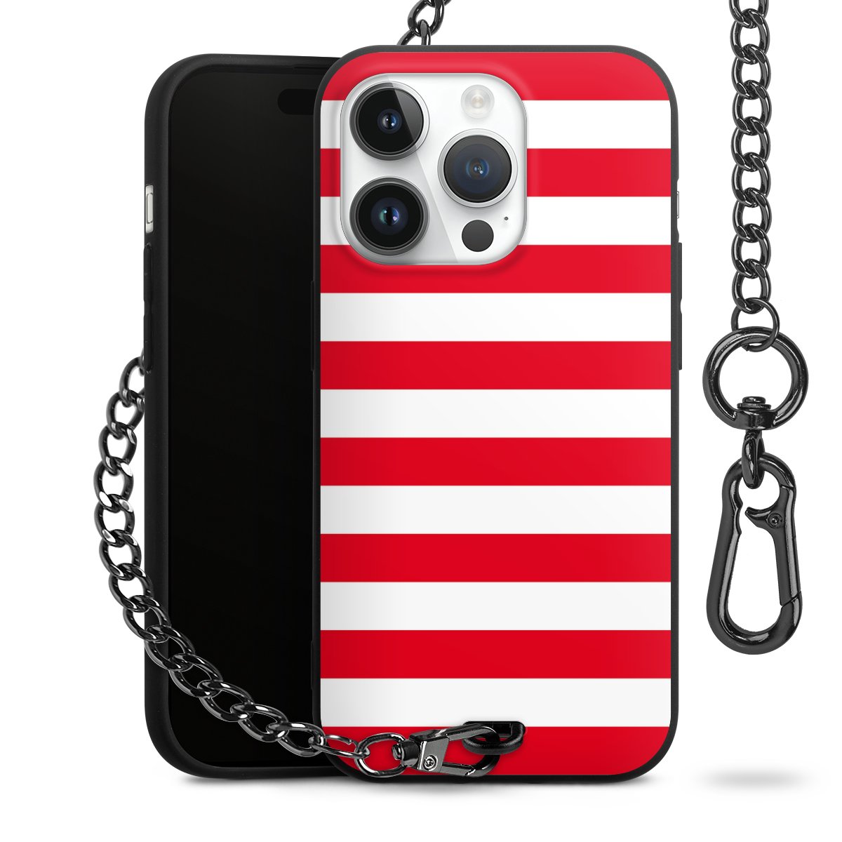 Die mattschwarze Silikon-Handyhülle besteht aus robustem TPU (thermoplastisches Polyurethan). Sie ist flexibel und schützt Dein Smartphone vor Stößen und Kratzern. Die Kette sowie der Karabinerhaken sind aus Metall in Gunmetal-Optik gefertigt. Für dieses Produkt kommen ausschließlich TÜV-geprüfte Materialien zum Einsatz.
