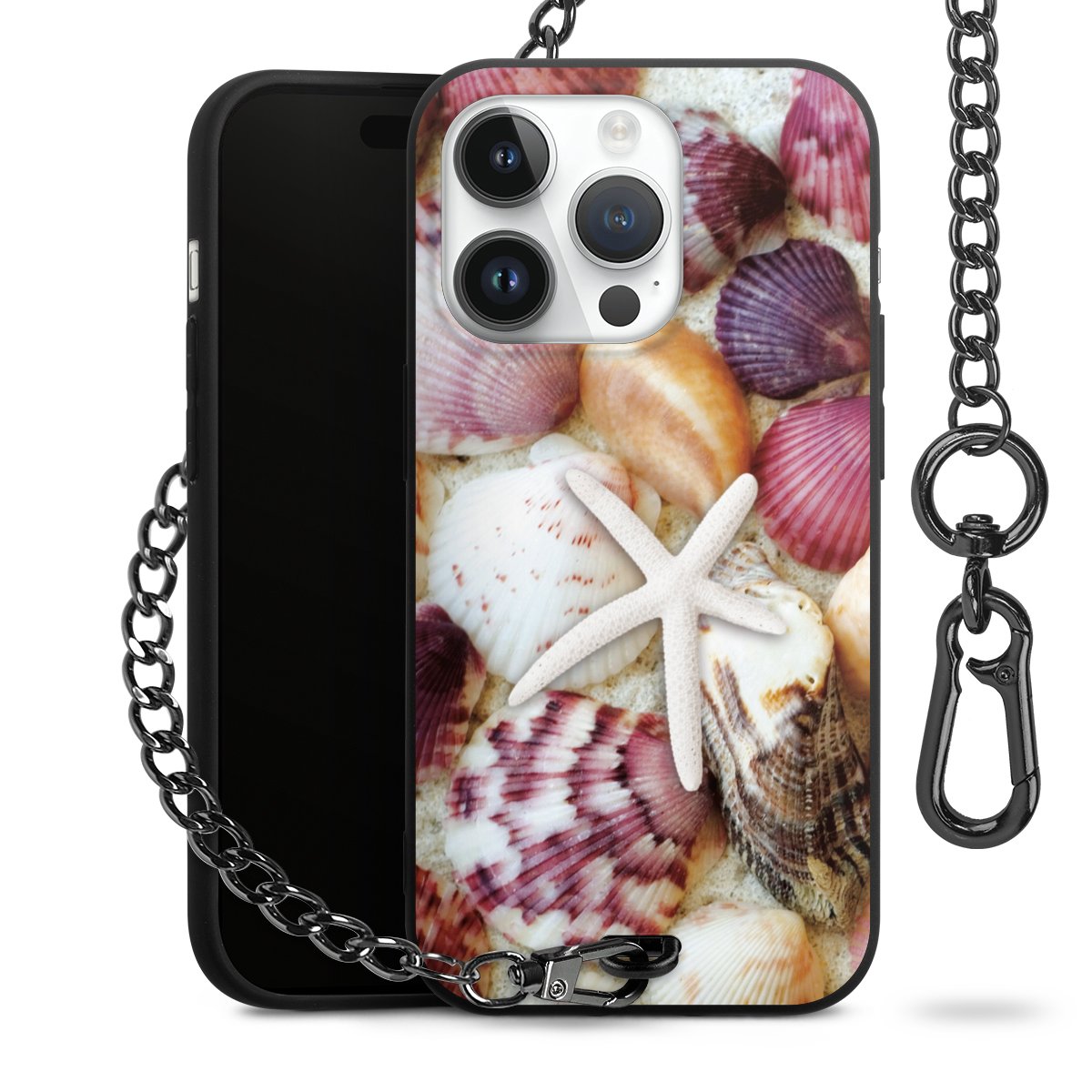 - Mattschwarze Handyhülle mit Metallkette