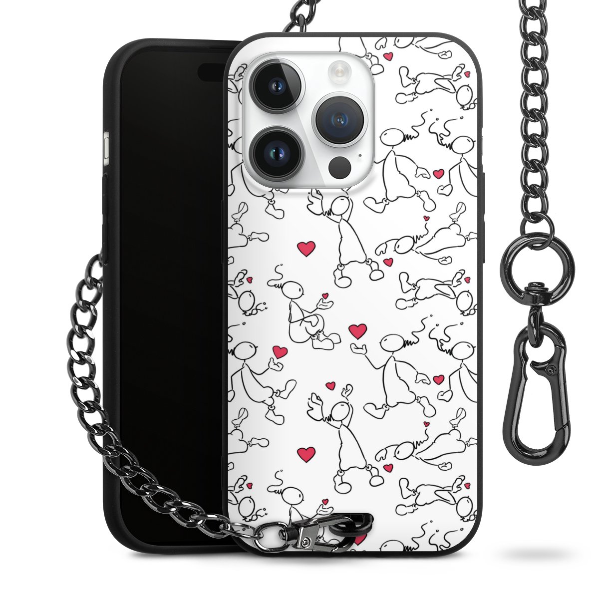 • Mattschwarze Handyhülle mit Metallkette