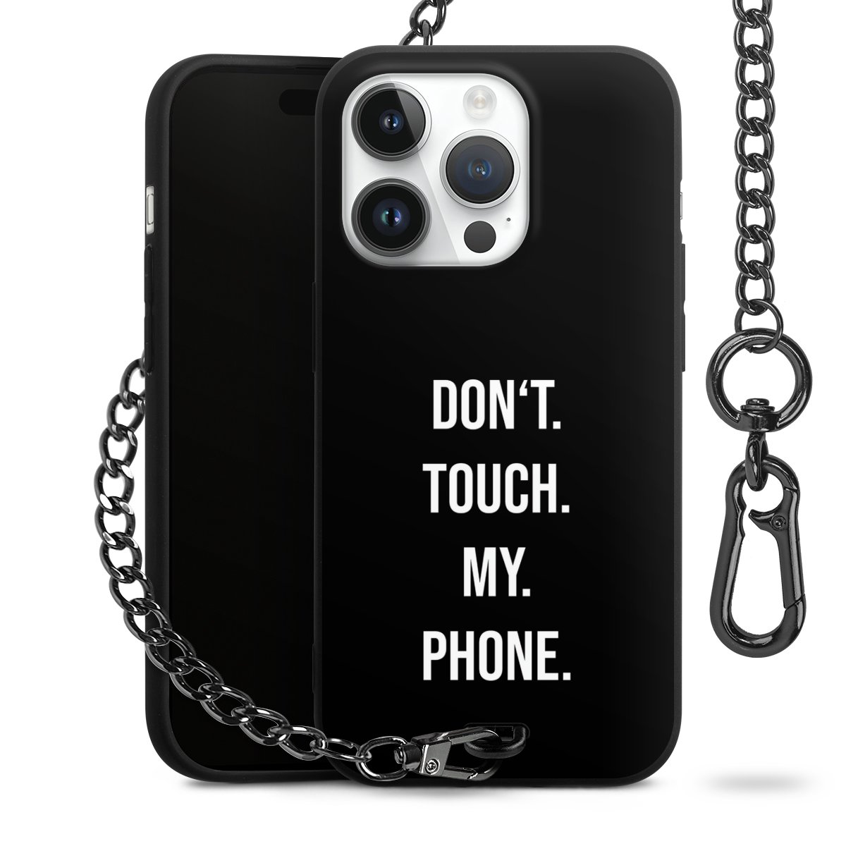 - Mattschwarze Handyhülle mit Metallkette