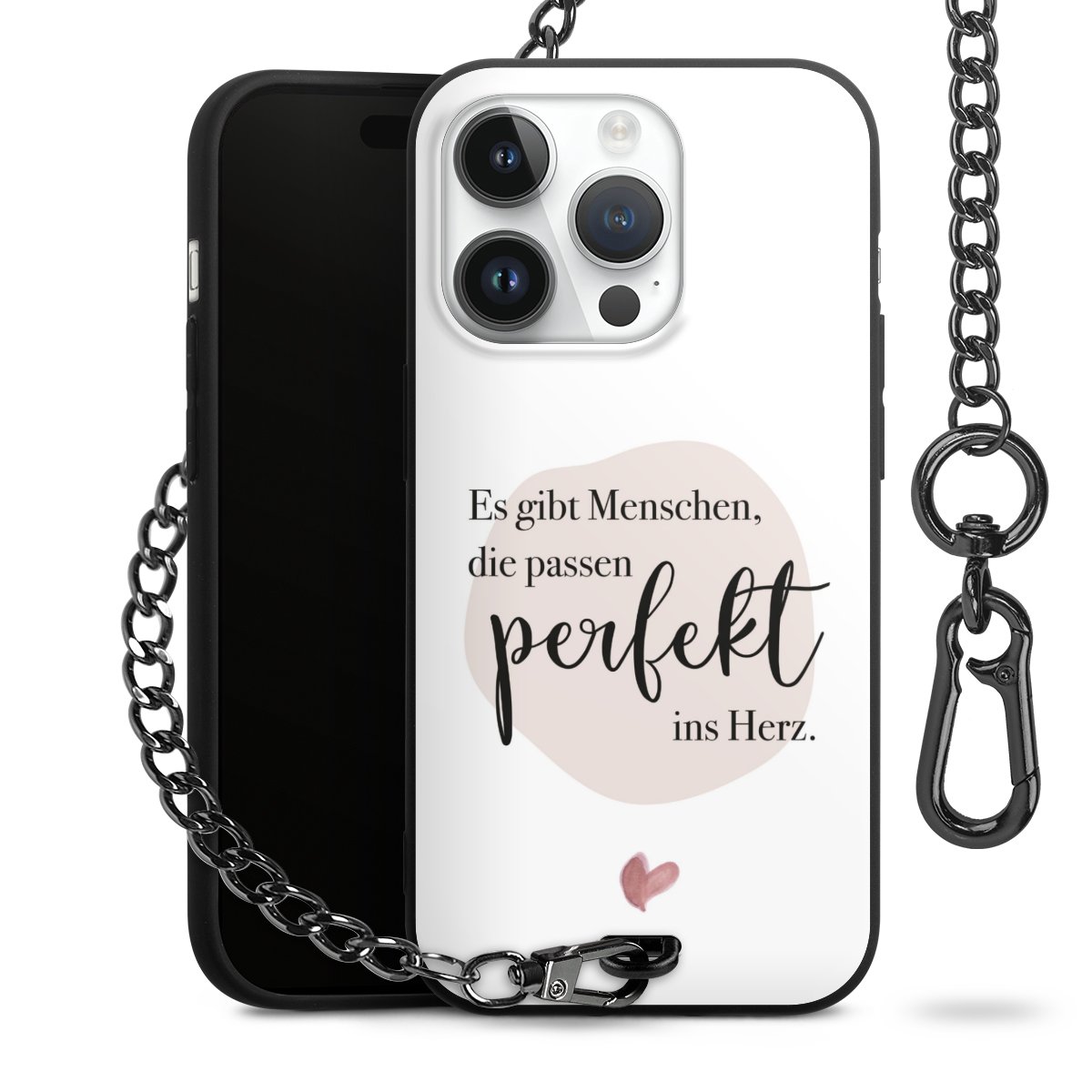 • Mattschwarze Handyhülle mit Metallkette