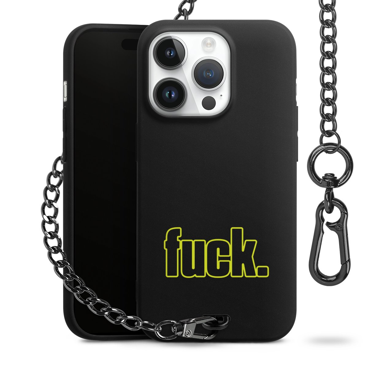 Die mattschwarze Silikon-Handyhülle besteht aus robustem TPU (thermoplastisches Polyurethan). Sie ist flexibel und schützt Dein Smartphone vor Stößen und Kratzern. Die Kette sowie der Karabinerhaken sind aus Metall in Gunmetal-Optik gefertigt. Für dieses Produkt kommen ausschließlich TÜV-geprüfte Materialien zum Einsatz.