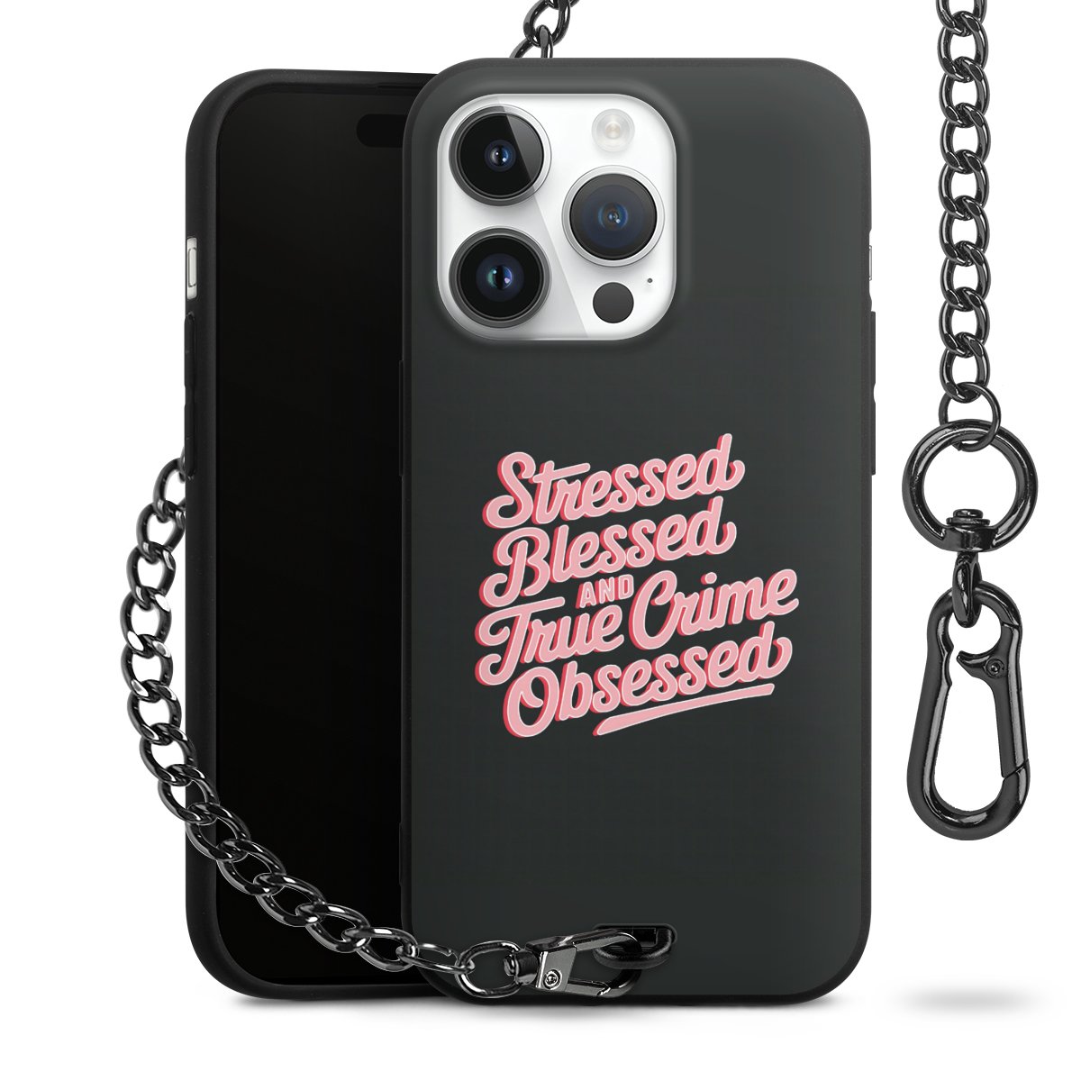 • Mattschwarze Handyhülle mit Metallkette