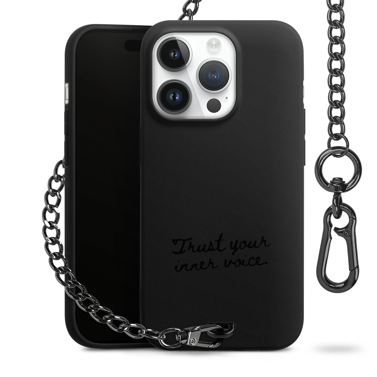 - Mattschwarze Handyhülle mit Metallkette