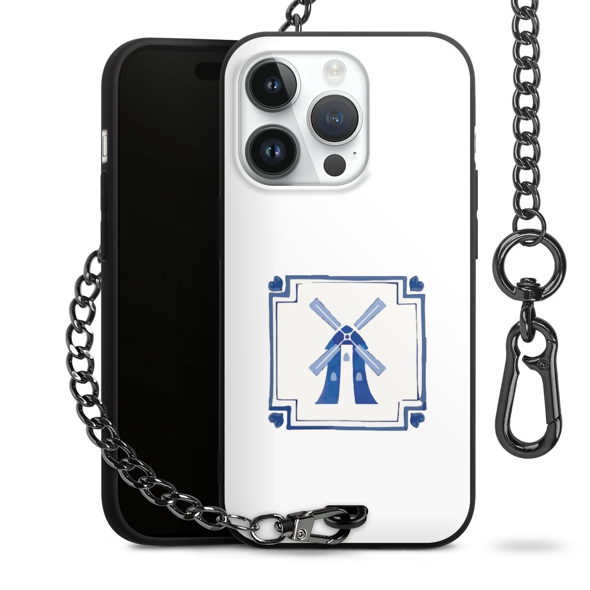 • Mattschwarze Handyhülle mit Metallkette