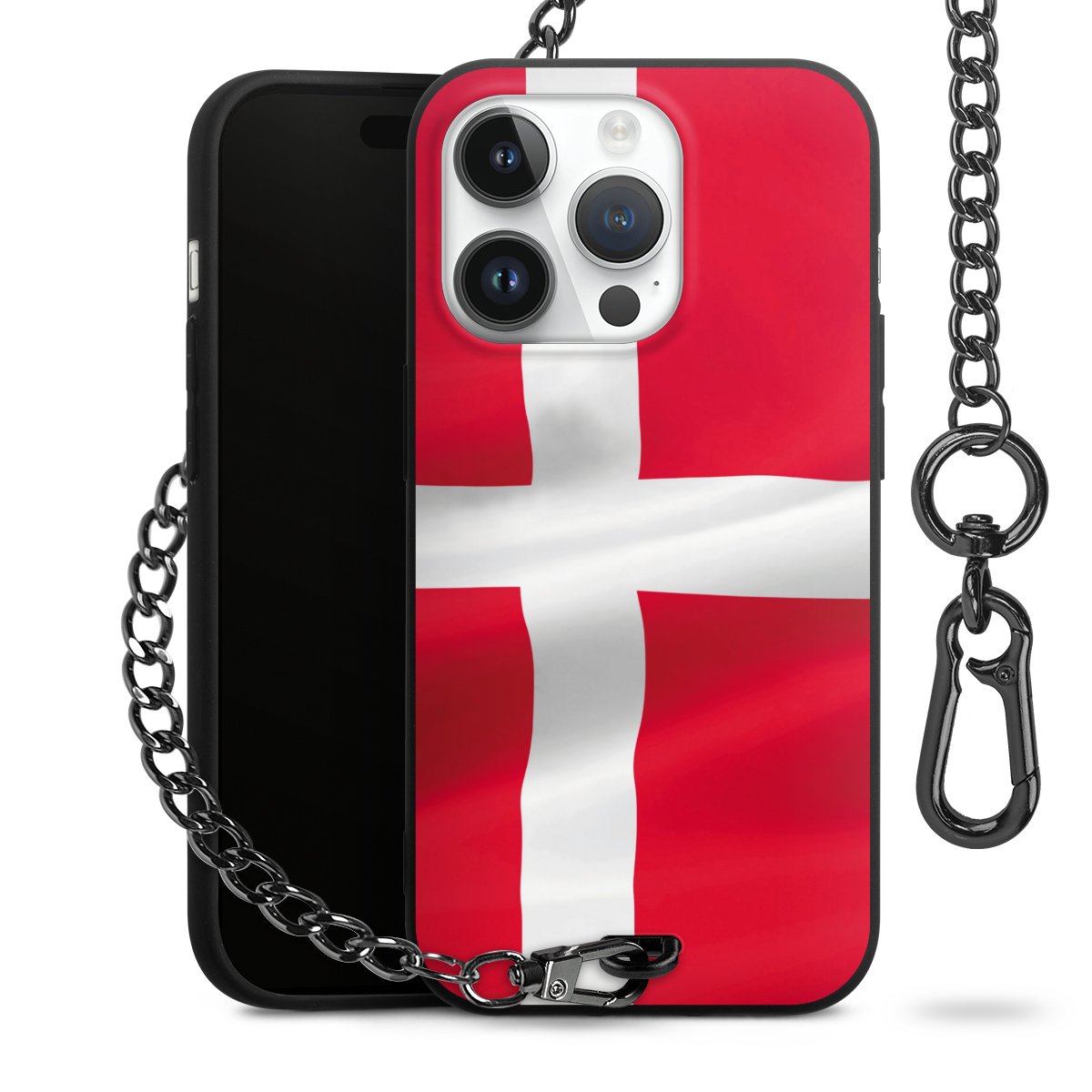 Die mattschwarze Silikon-Handyhülle besteht aus robustem TPU (thermoplastisches Polyurethan). Sie ist flexibel und schützt Dein Smartphone vor Stößen und Kratzern. Die Kette sowie der Karabinerhaken sind aus Metall in Gunmetal-Optik gefertigt. Für dieses Produkt kommen ausschließlich TÜV-geprüfte Materialien zum Einsatz.
