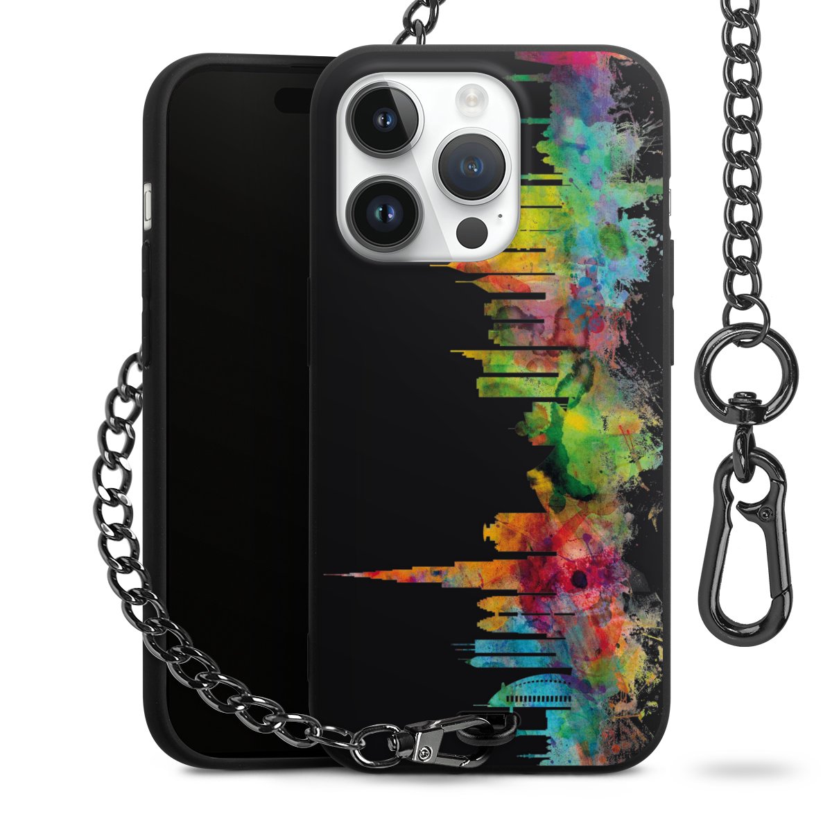 • Mattschwarze Handyhülle mit Metallkette