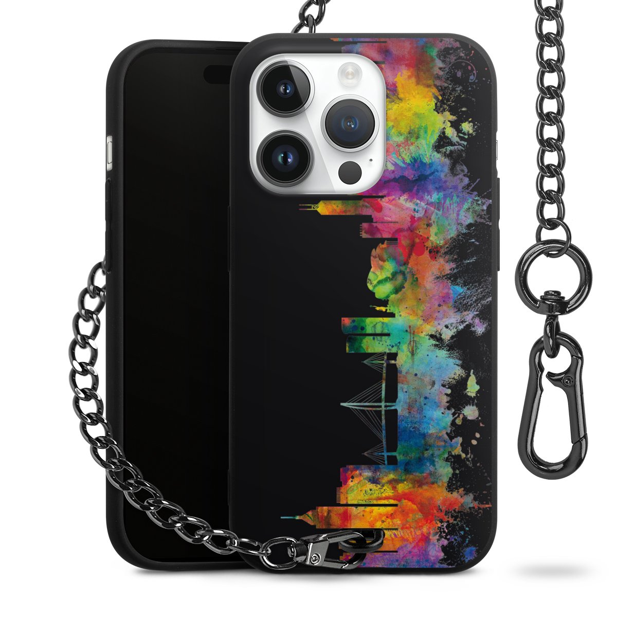 Die mattschwarze Silikon-Handyhülle besteht aus robustem TPU (thermoplastisches Polyurethan). Sie ist flexibel und schützt Dein Smartphone vor Stößen und Kratzern. Die Kette sowie der Karabinerhaken sind aus Metall in Gunmetal-Optik gefertigt. Für dieses Produkt kommen ausschließlich TÜV-geprüfte Materialien zum Einsatz.