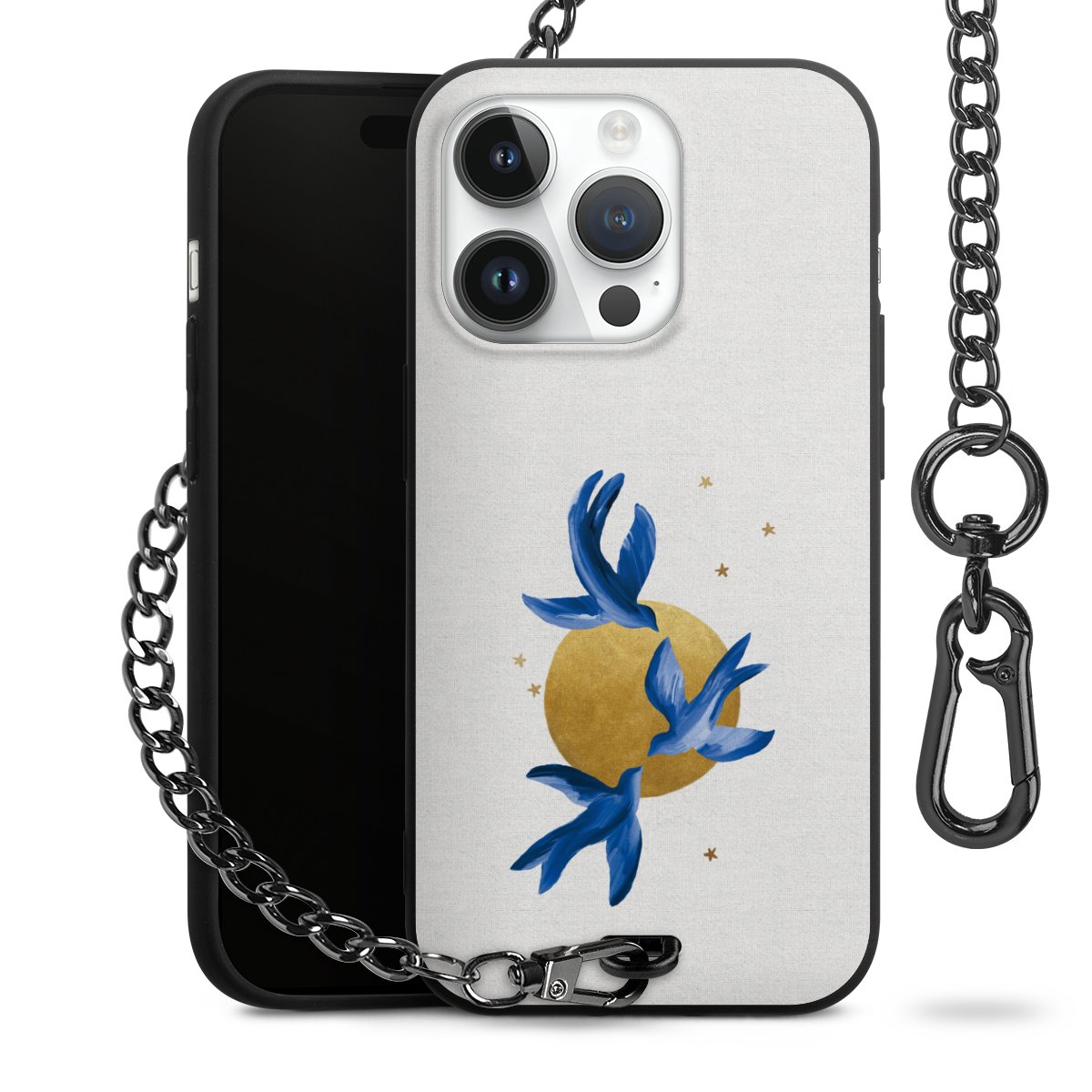 • Mattschwarze Handyhülle mit Metallkette