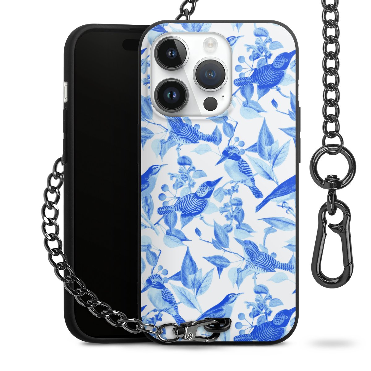 • Mattschwarze Handyhülle mit Metallkette