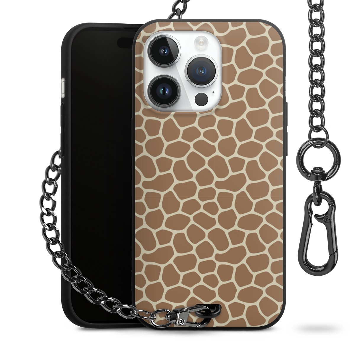 - Mattschwarze Handyhülle mit Metallkette