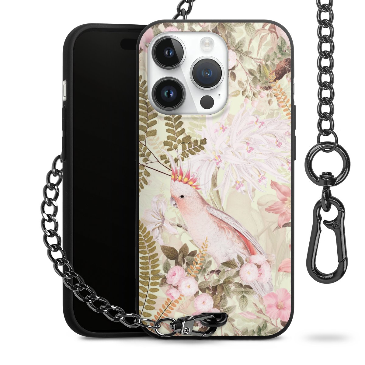 Die mattschwarze Silikon-Handyhülle besteht aus robustem TPU (thermoplastisches Polyurethan). Sie ist flexibel und schützt Dein Smartphone vor Stößen und Kratzern. Die Kette sowie der Karabinerhaken sind aus Metall in Gunmetal-Optik gefertigt. Für dieses Produkt kommen ausschließlich TÜV-geprüfte Materialien zum Einsatz.