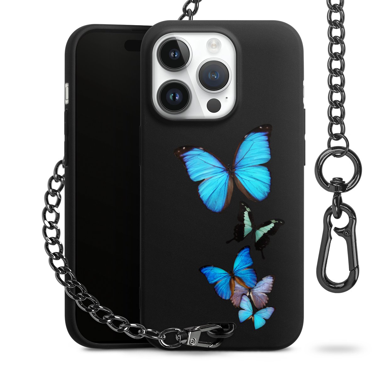 • Mattschwarze Handyhülle mit Metallkette