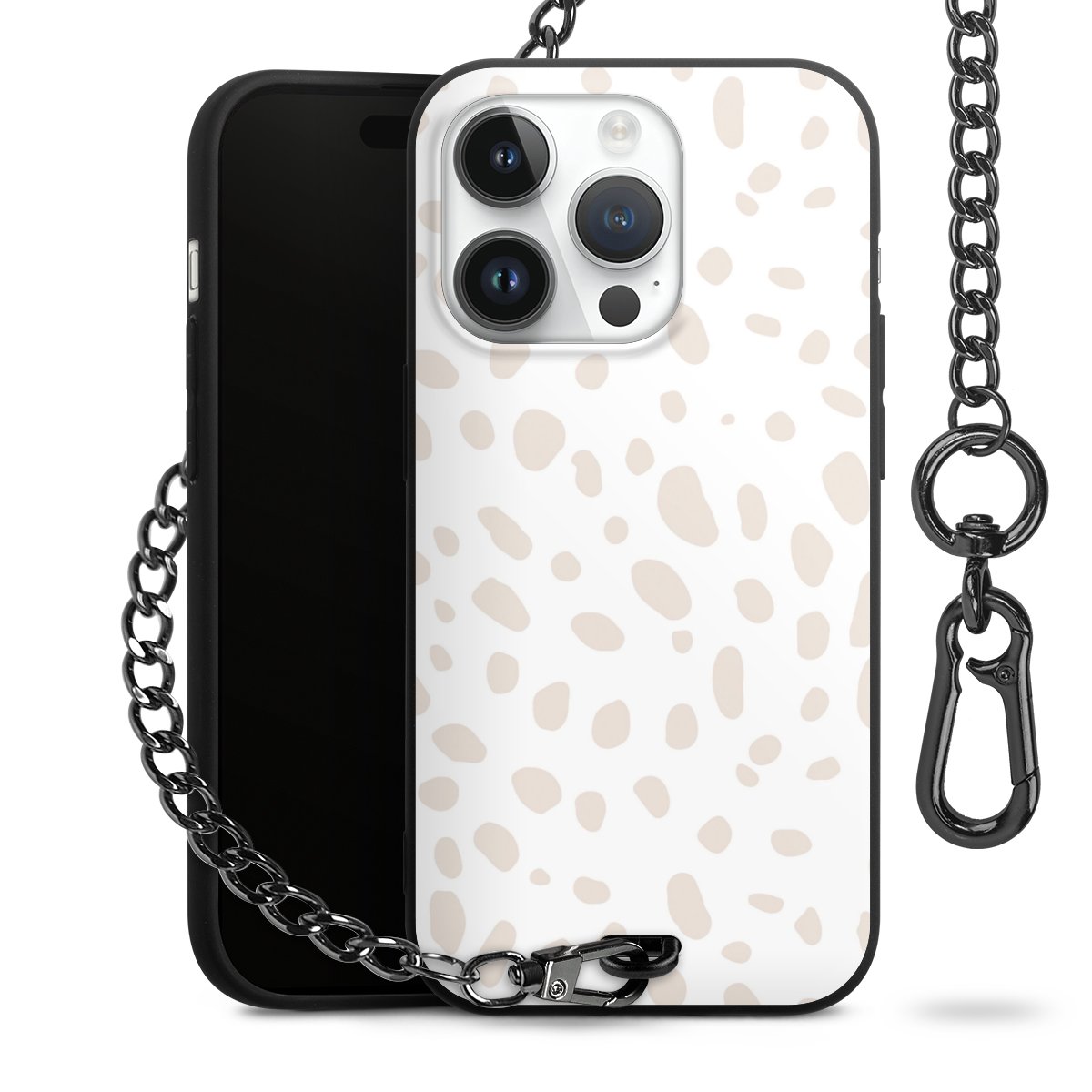 Die mattschwarze Silikon-Handyhülle besteht aus robustem TPU (thermoplastisches Polyurethan). Sie ist flexibel und schützt Dein Smartphone vor Stößen und Kratzern. Die Kette sowie der Karabinerhaken sind aus Metall in Gunmetal-Optik gefertigt. Für dieses Produkt kommen ausschließlich TÜV-geprüfte Materialien zum Einsatz.