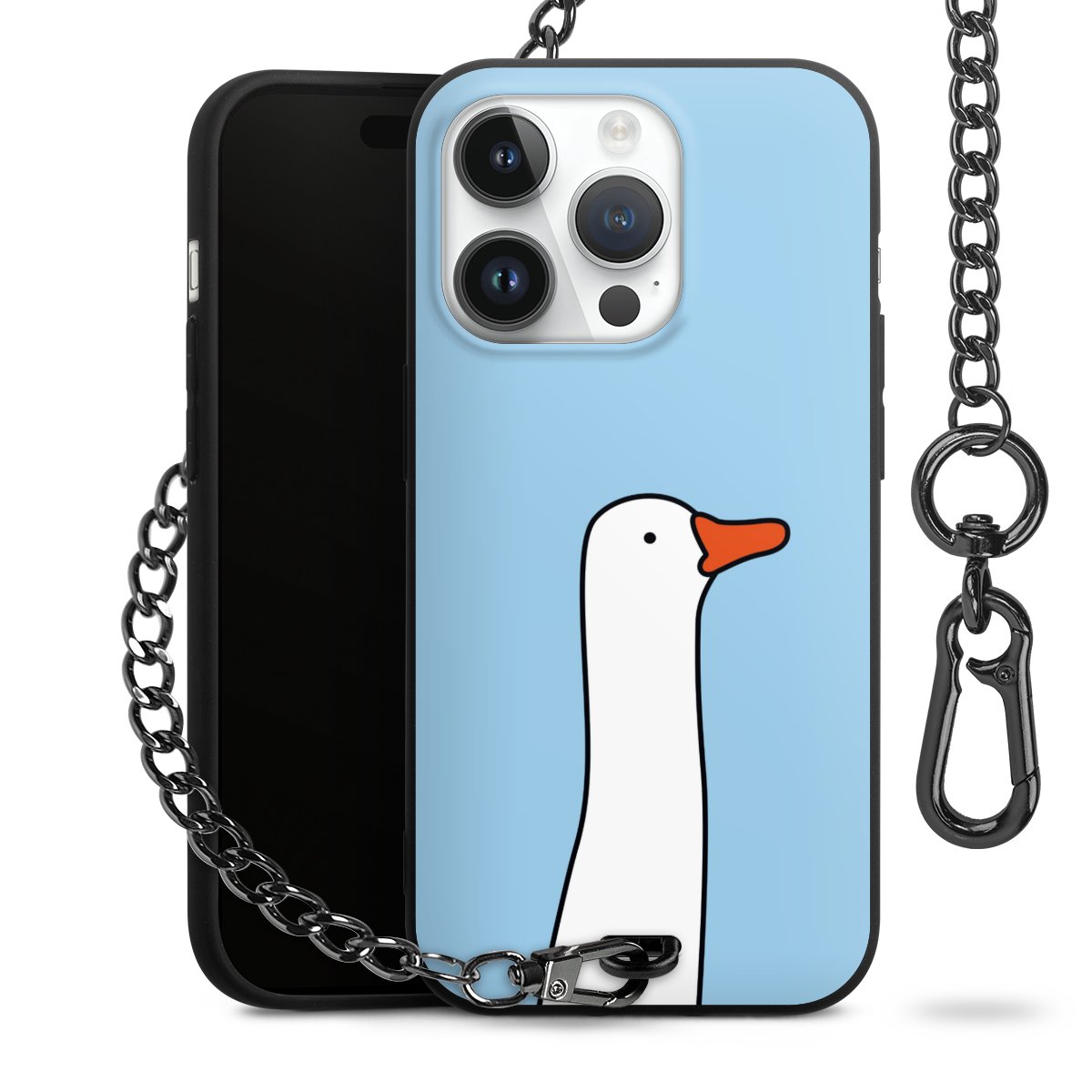 - Mattschwarze Handyhülle mit Metallkette