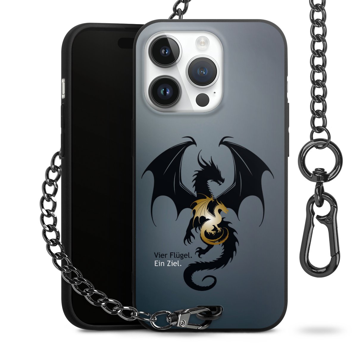 - Mattschwarze Handyhülle mit Metallkette