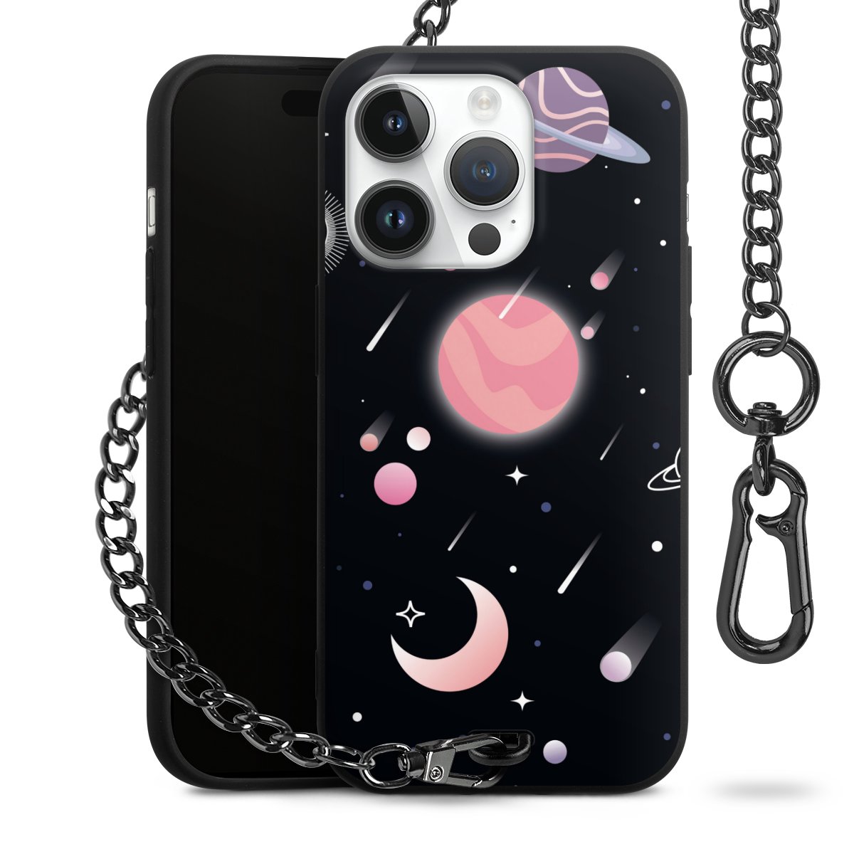 • Mattschwarze Handyhülle mit Metallkette