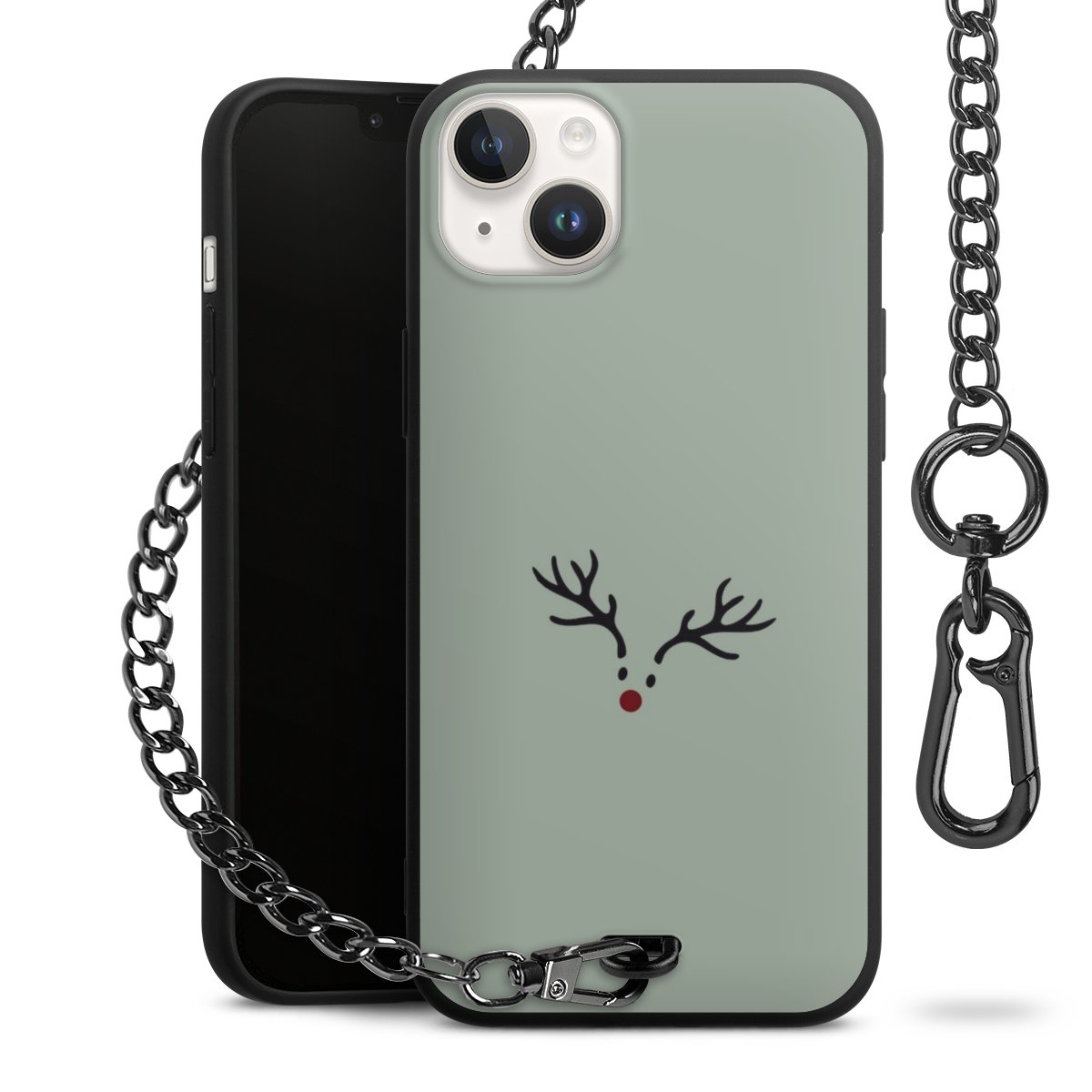 - Mattschwarze Handyhülle mit Metallkette