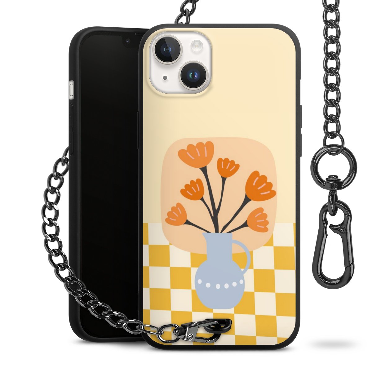 Die mattschwarze Silikon-Handyhülle besteht aus robustem TPU (thermoplastisches Polyurethan). Sie ist flexibel und schützt Dein Smartphone vor Stößen und Kratzern. Die Kette sowie der Karabinerhaken sind aus Metall in Gunmetal-Optik gefertigt. Für dieses Produkt kommen ausschließlich TÜV-geprüfte Materialien zum Einsatz.