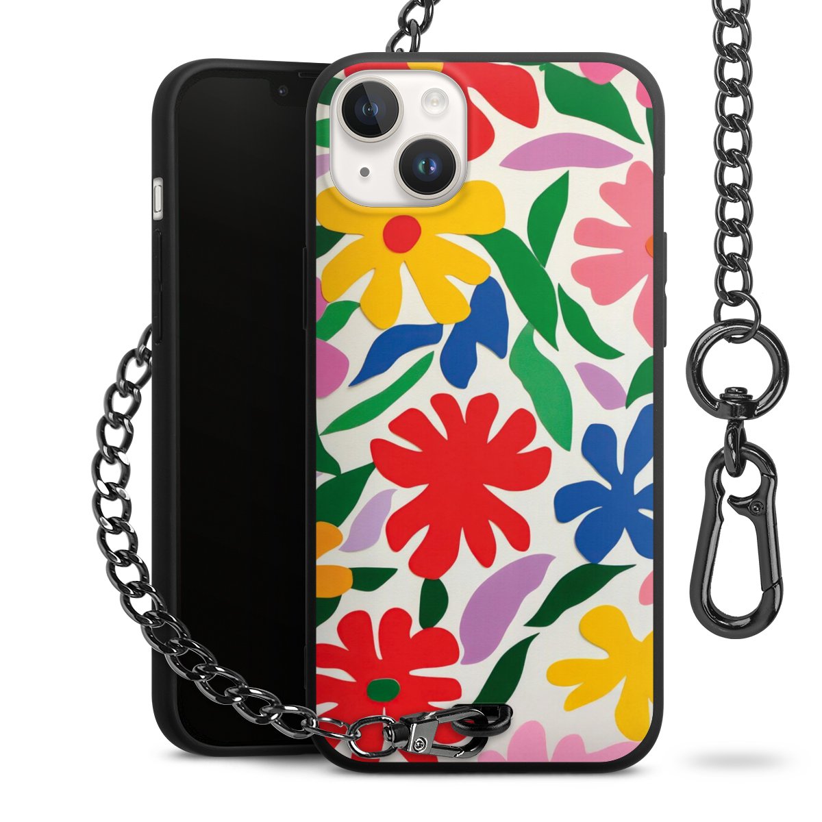 • Mattschwarze Handyhülle mit Metallkette