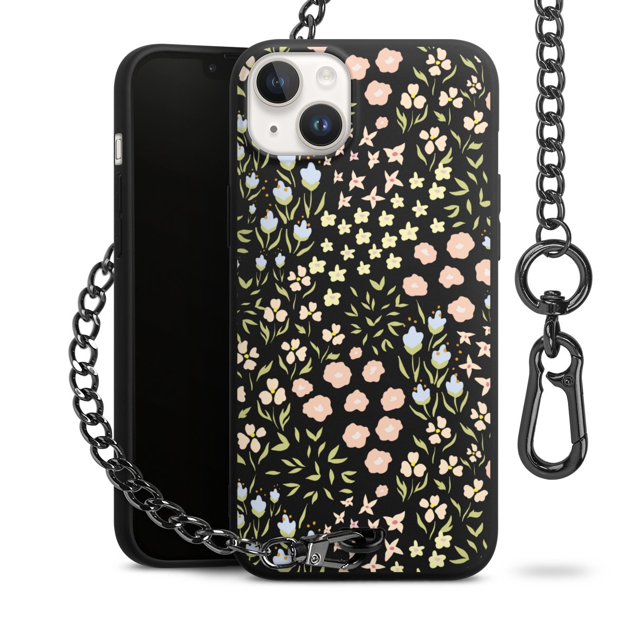• Mattschwarze Handyhülle mit Metallkette