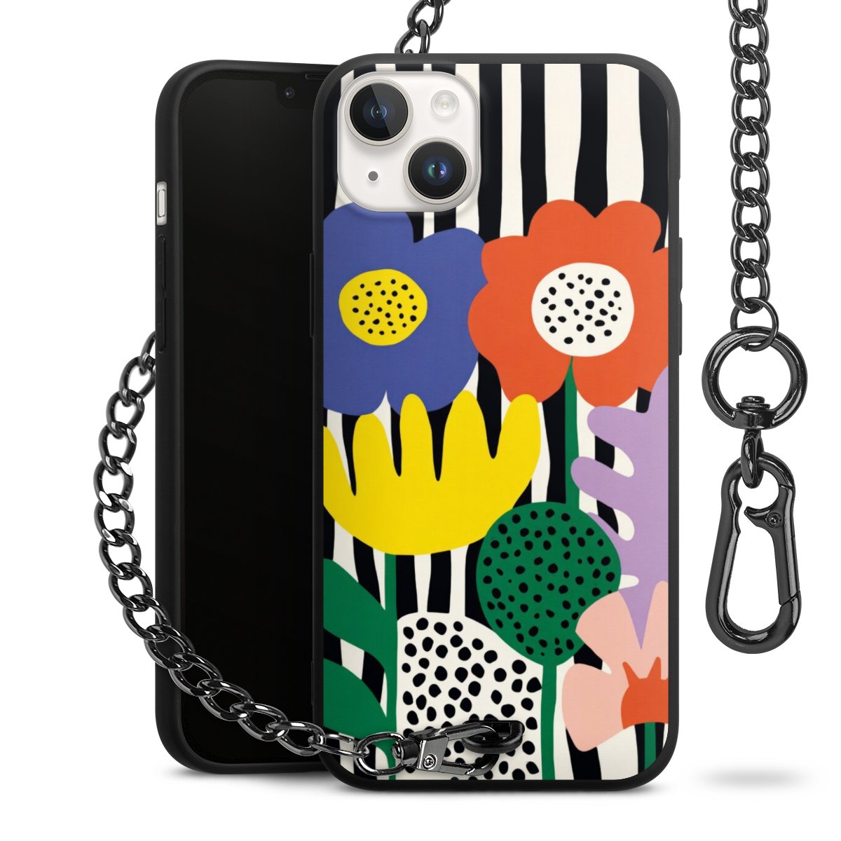 • Mattschwarze Handyhülle mit Metallkette