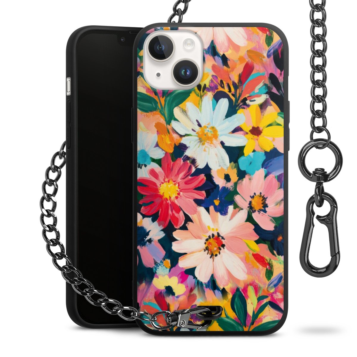 • Mattschwarze Handyhülle mit Metallkette