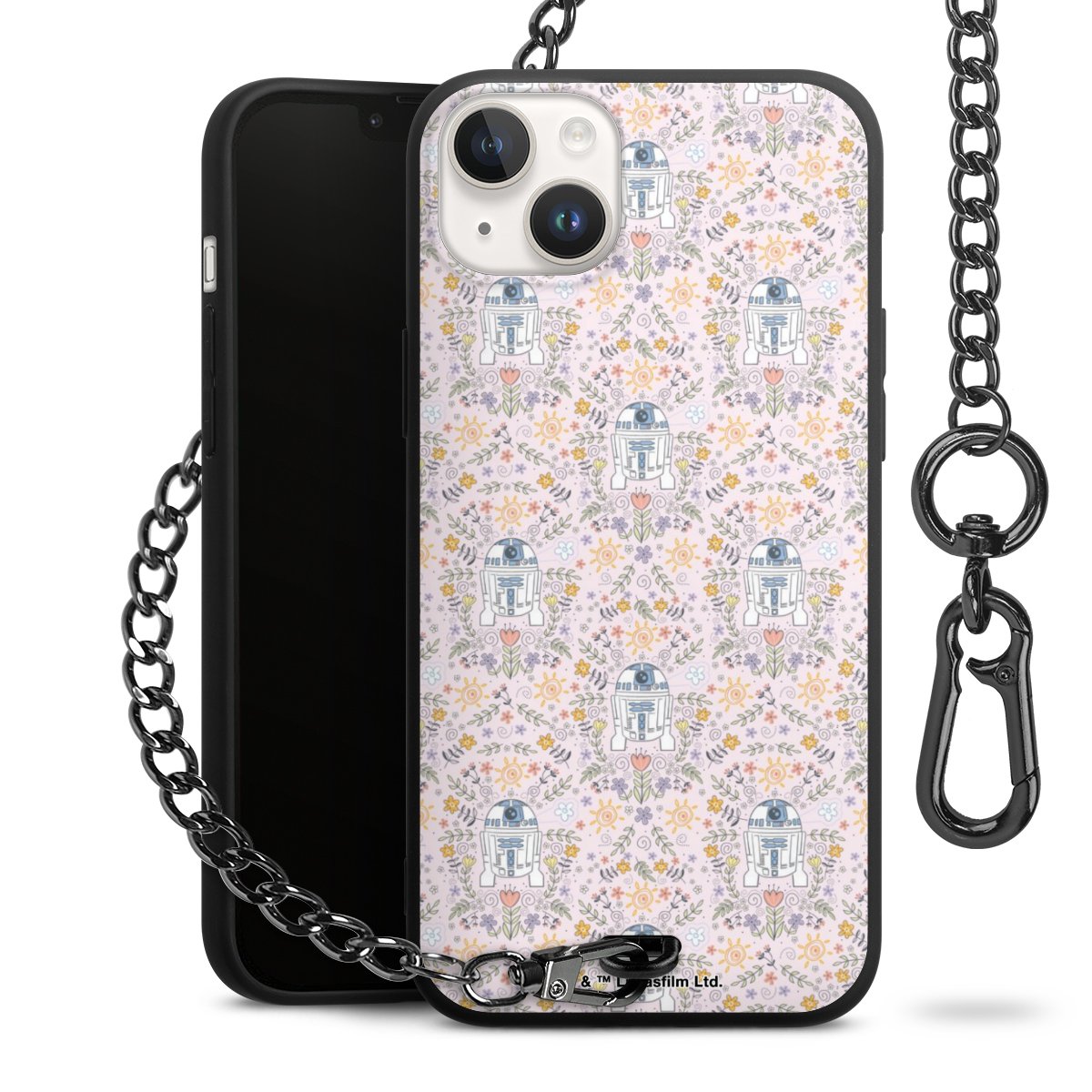 • Mattschwarze Handyhülle mit Metallkette