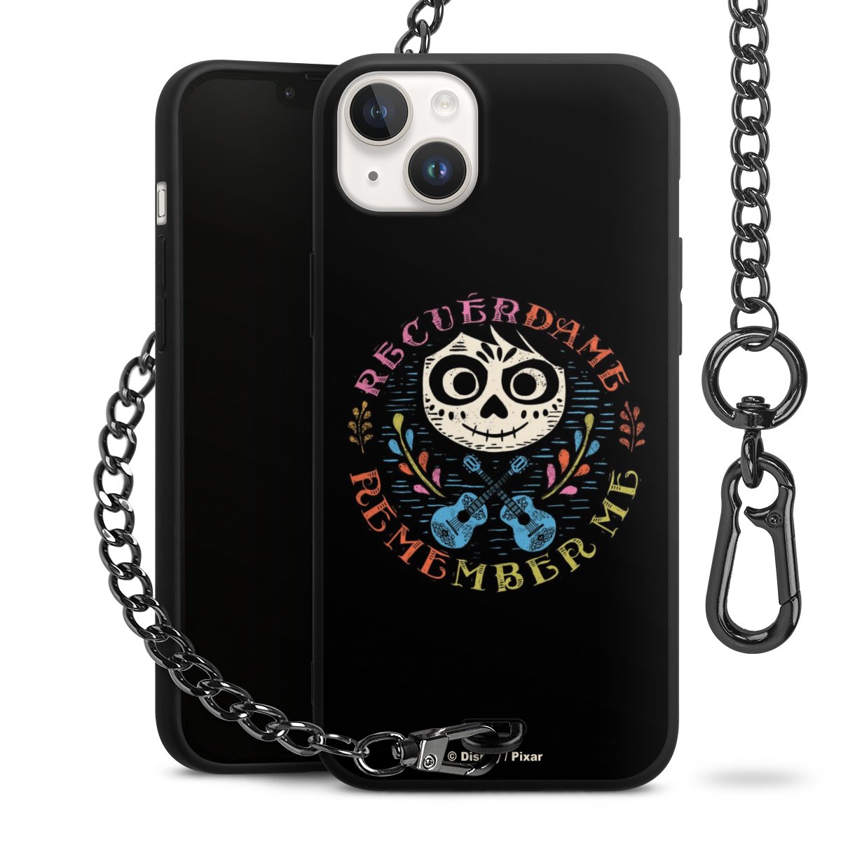 - Mattschwarze Handyhülle mit Metallkette