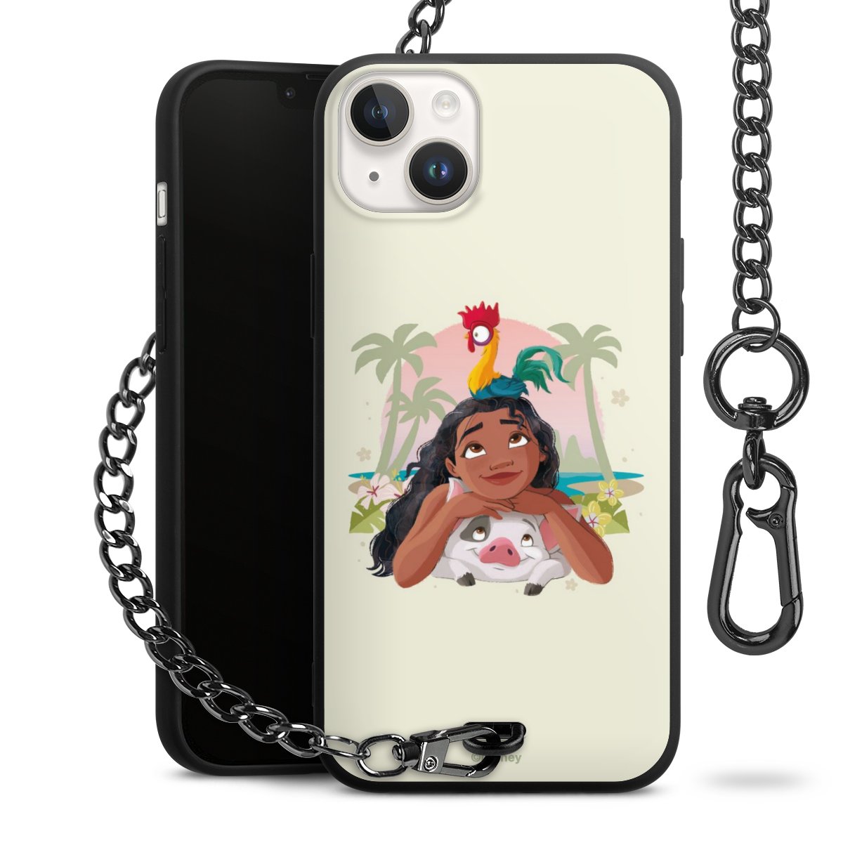 Die Handyhülle verfügt über eine mittig am unteren Rand platzierte Öse, an der die Metallkette stabil befestigt ist. Bestelle die Hülle einfach für Dein Smartphone-Modell, dann passt sie wie angegossen und Du brauchst sie bloß einmal anzudrücken. Handy in die Tasche, Karabiner an den Hosenbund – schon kann die Party starten.