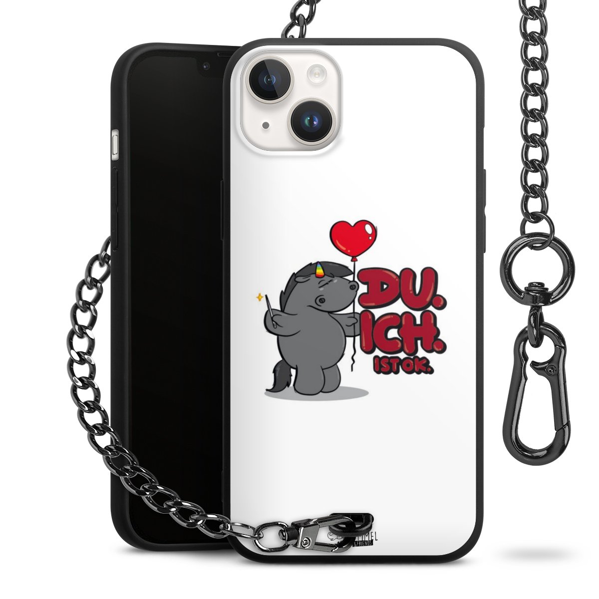 Die mattschwarze Silikon-Handyhülle besteht aus robustem TPU (thermoplastisches Polyurethan). Sie ist flexibel und schützt Dein Smartphone vor Stößen und Kratzern. Die Kette sowie der Karabinerhaken sind aus Metall in Gunmetal-Optik gefertigt. Für dieses Produkt kommen ausschließlich TÜV-geprüfte Materialien zum Einsatz.