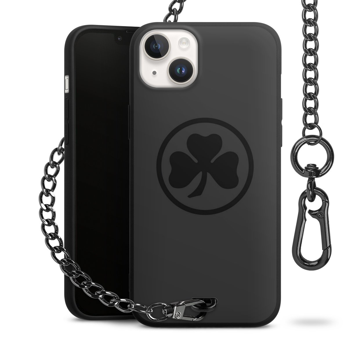 Die mattschwarze Silikon-Handyhülle besteht aus robustem TPU (thermoplastisches Polyurethan). Sie ist flexibel und schützt Dein Smartphone vor Stößen und Kratzern. Die Kette sowie der Karabinerhaken sind aus Metall in Gunmetal-Optik gefertigt. Für dieses Produkt kommen ausschließlich TÜV-geprüfte Materialien zum Einsatz.