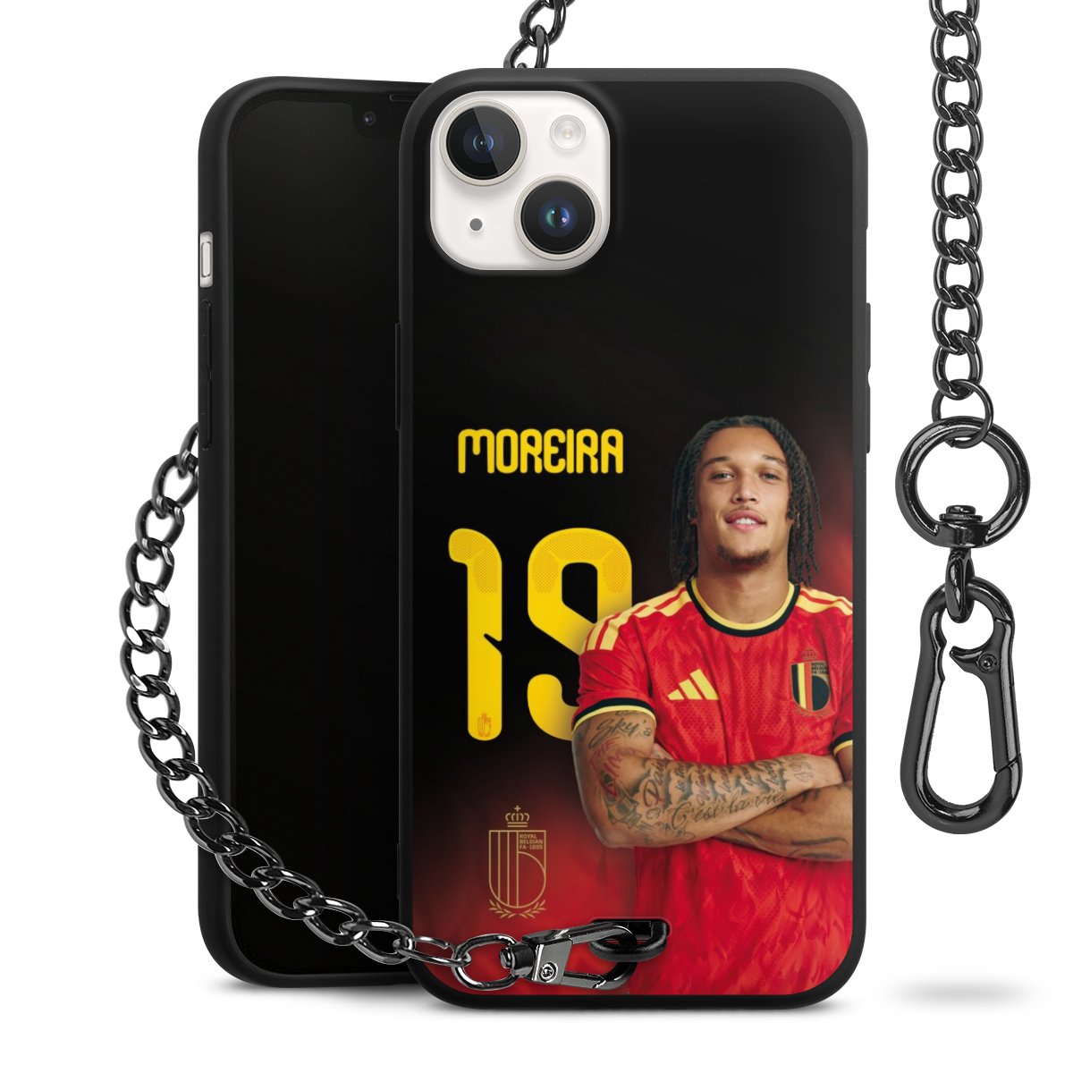 Ob im Alltag, beim Feiern mit Deinen Jungs oder auf Festivals – mit dem superpraktischen Belt Case steckst Du alle Sorgen um Diebstahl und Spider-App ganz entspannt in die Tasche. Es besteht aus einem coolen mattschwarzen Silikon Premium Case, dem Du ein individuelles Design verpassen kannst, und einer daran befestigten Kette in lässiger Gunmetal-Optik. Mit dem Karabiner auf der anderen Seite klickst Du die Kette mit einem Handgriff an Deine Gürtelschlaufe und schon ist Dein Smartphone sicher und stets griffbereit in der Hosentasche verstaut.