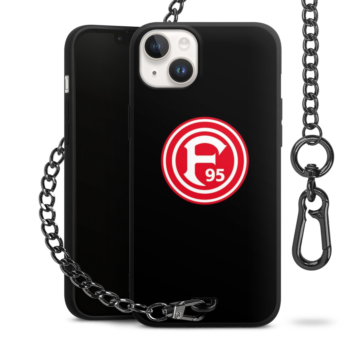 Die Handyhülle verfügt über eine mittig am unteren Rand platzierte Öse, an der die Metallkette stabil befestigt ist. Bestelle die Hülle einfach für Dein Smartphone-Modell, dann passt sie wie angegossen und Du brauchst sie bloß einmal anzudrücken. Handy in die Tasche, Karabiner an den Hosenbund – schon kann die Party starten.