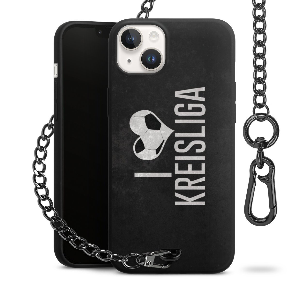 • Mattschwarze Handyhülle mit Metallkette