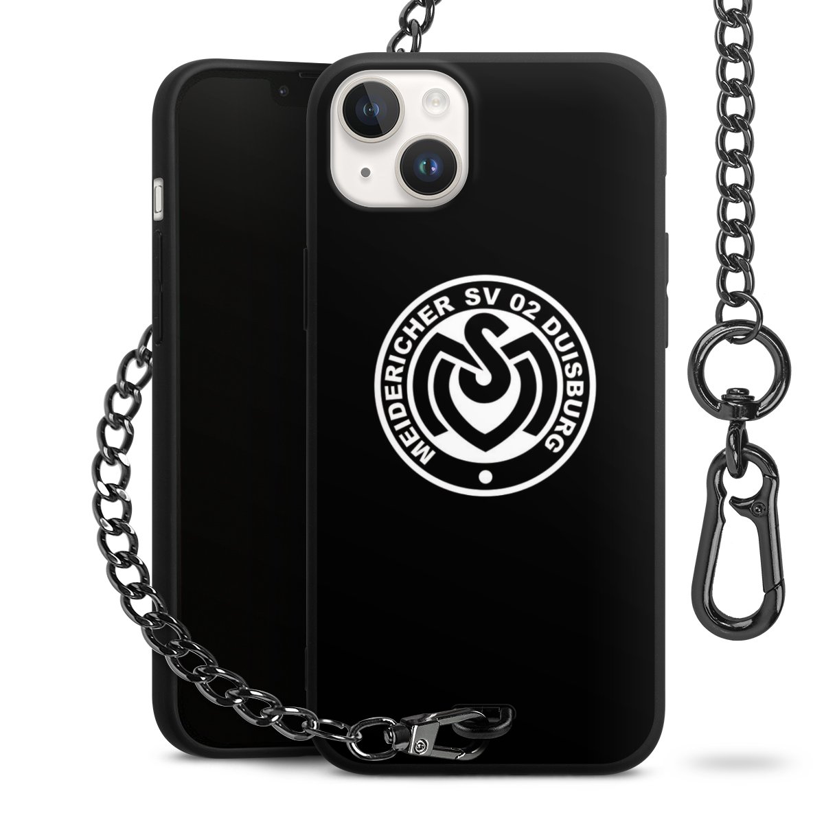 Die mattschwarze Silikon-Handyhülle besteht aus robustem TPU (thermoplastisches Polyurethan). Sie ist flexibel und schützt Dein Smartphone vor Stößen und Kratzern. Die Kette sowie der Karabinerhaken sind aus Metall in Gunmetal-Optik gefertigt. Für dieses Produkt kommen ausschließlich TÜV-geprüfte Materialien zum Einsatz.