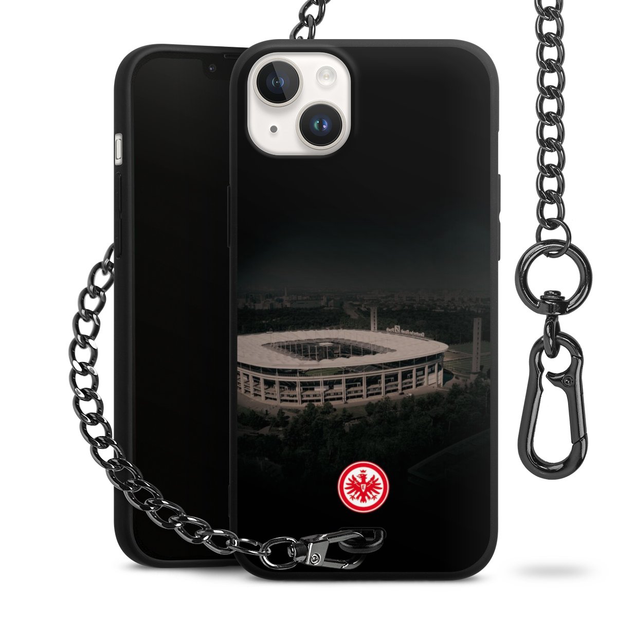 • Mattschwarze Handyhülle mit Metallkette